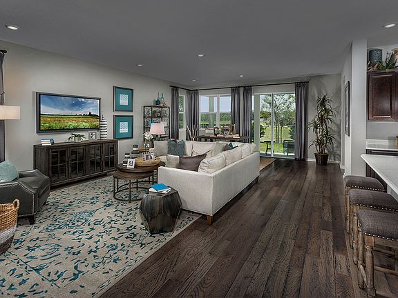 This beautiful home is currently modeled at our Creekstone community and has great curb appeal with its professional yard landscaping. Moving inside, this popular floor plan features 9-ft. 4-in. ceilings, and you'll also find recessed lighting throughout. The kitchen offers 36-in. upper cabinets, granite countertops, an island, and Whirlpool® black stainless steel appliances. Moving to the master bath, you'll discover a spacious shower with tile surround, granite countertops, and an extended vanity with dual sinks. Outside, enjoy the extended covered back patio.