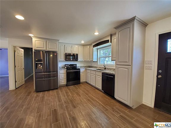 Completely remodeled, 3 Bedroom, 2 Bath home in the desirable Goliad County on a little over 4 acres. This home was taken down to the studs and redone with new insulation,duct work, electrical panel and wiring, water well softener, a/c inside and out, sheetrock, fresh paint, tankless water heater,beautiful wood-like tile flooring, shower/tub combo,and a shower & stand alone tub in the master bath! Outside you will find a barn with a covered carport, chicken coop, and tons of potential. The property has 2 ponds, 1 is filled and the other is waiting for you to fill to your liking. Don't miss out on your private oasis, this home is ready for you to make yours today!