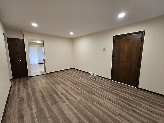 Beautifully renovated apartment on the first floor. Included with unit is a 1 car garage and 1parking space. Beautiful location no neighbors behind property, very quite and a lot of privacy. Minutes from highway, schools, Hospital, shopping, restaurants! Beautiful Centennial Park nearby.