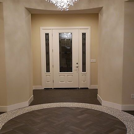 Beautiful Single Story Home Very high ceilings throughout the homes. Both the Master suite and the formal dinning rooms have caulford ceilings. Large Master bedroom suite with a large master bathroom and walk in closet. Mini Suite with bathroom and walk in closet. 2 additional bedrooms. Custom Doorway at 42” Formal dining room Great Room with built in cabinets Large Kitchen with white cabinets that are timeless With lights on the top cabinet row. Beautiful entryway with tile throughout the house. 3 bedrooms have upgraded carpet 1 mini suite with tile- currently used as a office Large mud room and large laundry room 3 car garage Backyard built with Lanai with lights and fans Beautiful swimming pool 360 degrees of landscaping This house has an enormous amount of upgrades. Water Softener system built in Over designed solar system to meet all electrical needs. This neighborhood belongs to the RIPON School district.