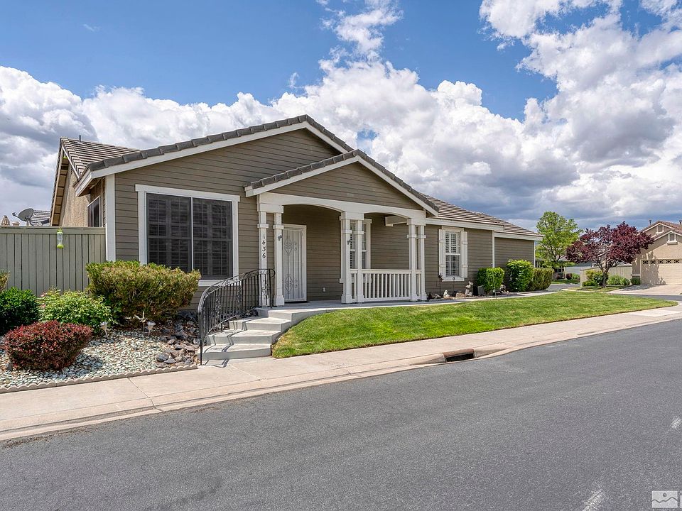 Move-in ready home in desirable Miner's Village. One of Reno's few 55+ communities. Desirable floor plan is light and bright. Plantation shutters through out home. Kitchen has Corrigan counter tops with tile back splash. custom closets in bedrooms. Wood vinyl floors in main areas. New water heater.    Epoxy floor in garage.  Back has a fountain.  Central VAC, 2 TV's, washer, dryer, refrigerator and umbrella stays.  gas stub supply line in back for BBQ, Gas line in laundry room.,   Attic lighting installed in both the house and garage attics. House attic has electrical outlet and garage has power for future attic fan installations. Pre-inspection completed. HOA includes club house, front yard care, pool and jacuzzi.