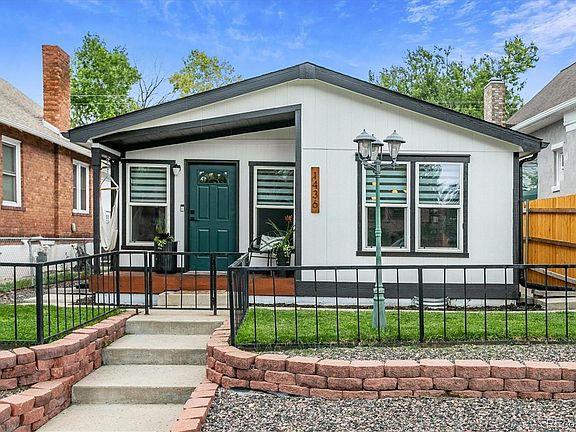 CHARMING and SOPHISTICATED! Your immediate impression of this 2 bedroom bungalow (plus an office) will make you fall in love. The stunning curb appeal, professional landscaped yard, and newly painted exterior shows pride of ownership and welcomes you to experience living minutes away from Sloan’s Lake, Empower Stadium, downtown Denver and easy access to I-25! The West facing front porch is perfect for morning coffee and the back patio for cookouts and entertainment. As you enter this open and spacious floor plan your eyes are drawn to the sloped ceilings. DON'T MISS the desk space tucked behind the 3/4 wall for this work-from-home area featuring Wainscoting panels. Enjoy the open dining & kitchen ambience with sunlight streaming in. South and West facing kitchen windows make the Quartz countertops and hand-cut ceramic backsplash tile sparkle in the evenings. Designer touches can be seen in the bedside sconces, zebra blinds, and built-in shelves throughout, and make this home unique and special. The whole home Lutron Caseta Lighting Control system gives you the ability to control your lights from the couch for ‘movie mode’ or when you’re out of town – convenient and comforting. The spacious primary bedroom offers two walk-in closets and a 5-piece ensuite. The detached 2-car garage has enough space for your workout equipment as well as your cars. Hurry to see this special home! Your pups will be able to play, romp, and roll as the fenced in yard allows them freedom to do so! The remaining home warranty will be transferred to you upon closing and doesn't expire until January/2026.