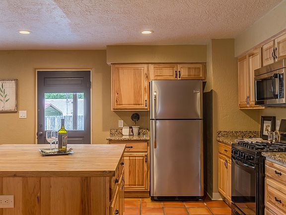 The property includes 2.39 acres, irrigation rights and house with irrigation well. There is also barn/stalls, and newer fully enclosed horse fence. The main house has beautiful saltio tile and wood floors. The sunken main living area is the perfect place to gather for entertainment or cozy up to the wood burning fireplace. The spacious kitchen has a long bar for seating and a large butcher block island with storage. Stainless appliances, gorgeous cabinets, and breakfast nook in the kitchen as well. The formal dining room can accommodate many guests at your dinner table. The master suite has a beautifully updated bathroom with glass shower. The casita is about 1100 sq ft with new floors and 2 new heaters. Property has acequia irrigation and 2 drilled wells.