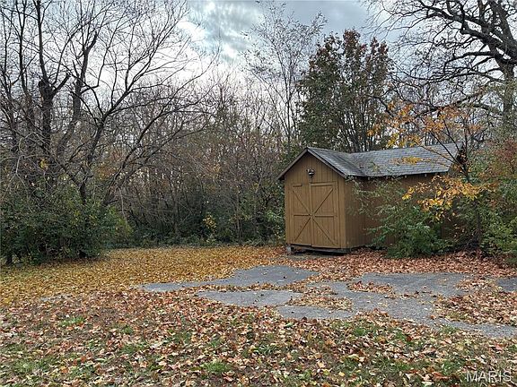 Remodeled and ready for occupancy! This home has multiple entry points, however has a kitchen on the main level and one on the lower level. Large rooms and original hardwood flooring on main level in living/dining room areas. Beautiful new kitchen cabinets and stainless steel appliances. Wooded views looking South from a nice balcony. Three or 4 bedrooms on this level with segregation for possible separate apartment space. Zone heating with Geothermal heat on one side and baseboard heat on the other. On the basement level, large living space with wood burning fireplace and outdoor patio area that goes right into the wooded back yard area. Great new kitchen space with washer/dryer included. There is room for a small efficiency apartment on the lower West side, but currently does not have a kitchen in that area. Create your own walking trails on the remaining 4+ acres to the South. City water and septic tank on this property.