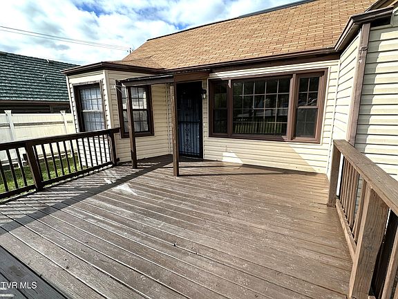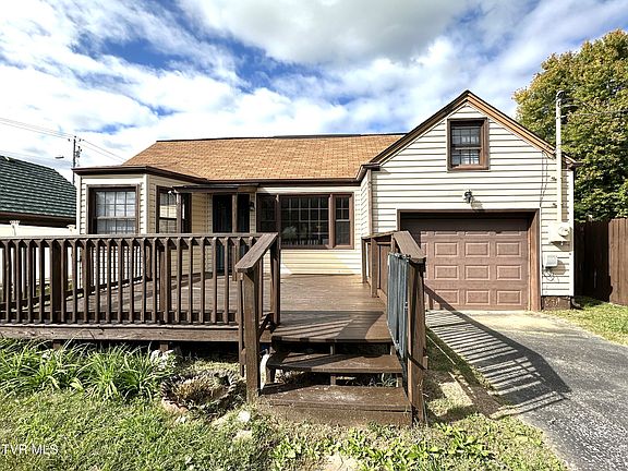 ADORABLE COTTAGE READY FOR ITS NEW OWNERS - RESIDENTIAL OR BUSINESS OWNER! Need a 2 bedroom (possibly 3 bedroom), 1-1/2 story, 1 bath home with approximately 1,574 sq. ft., in convenient location to downtown Elizabethton, within 10 minutes to I-26, Johnson City, and minutes from Tweetsie Trail, city schools, restaurants, and shopping? This property is zoned B-2 which would permit the property to be used as a single-family residence or as a small business. This lovely cottage-style home features a bright, spacious living room that flows to a sunlit dining area, both with gorgeous hardwood flooring. The dining area is enriched by a beautiful bay window to enjoy your morning coffer or afternoon / evening meal. The kitchen is graced with brand new luxury vinyl plank flooring, quartz counter tops, ample cabinet space with the cabinets having been freshly painted, a stand-alone pantry shelf for additional storage capacity and a stainless-steel refrigerator and stove. Off the kitchen you will find an additional room that could be used for a large pantry, office, library or multiple other uses. Washer and dryer hookups are located in the laundry room. The full bath in the hallway has ceramic tile flooring and a brand-new ceramic tiled walk-in shower with a built-in cabinet for linen storage, single vanity with mirror and a large wall mirror. Large master bedroom has hardwood flooring, double closet space, with lighted ceiling fan. The 2nd bedroom and an additional room that could be used as a bedroom (has no closet) upstairs both have hardwood flooring. Home has been newly painted with neutral light grey color throughout. This home has more than plenty of storage space inside and outside, as there is additional storage space in three (3) attached outside rooms that are accessible only from the outside which allows them the advantage of being adaptable to your specific needs and limited only by your imagination as to their usage. Home has heat pump for heating and cooling. There is an oversized front wooden deck that has been recently painted, small stone patio area, plenty of off-street parking, one-car garage with an additional storage cabinet and low maintenance yard upkeep with a fenced backyard area great for kids and pets. The home also features privacy fencing on both sides of the home.