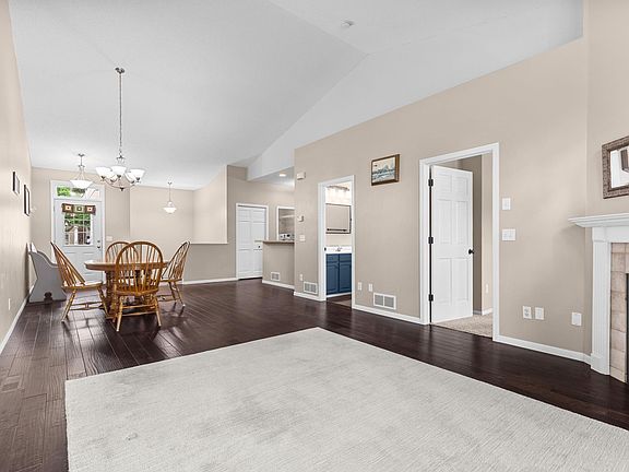 The main floor boasts an open concept design with vaulted ceilings and hardwood floors. The bright living room is anchored by a cozy fireplace with oversized patio door windows that open to a cozy deck. The comfortable kitchen with its serving counter open to the ample dining area making it ideal for both everyday living and entertaining. You'll love the convenience of main floor laundry and a large primary bedroom with a walk-in closet.