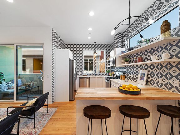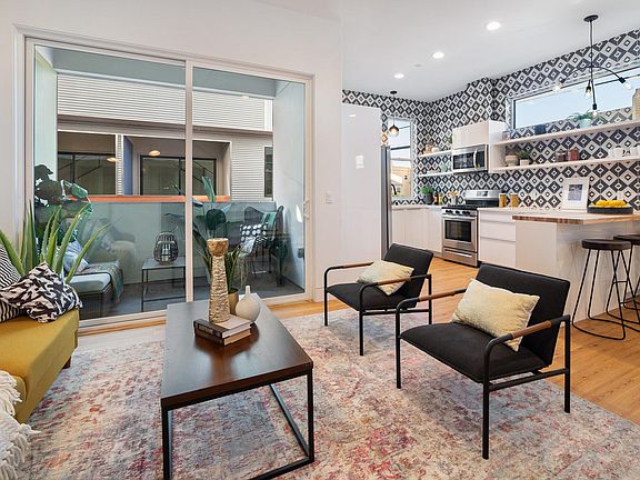 This luxury modern townhome offers an abundance of light, with 10 foot ceilings, oversized windows, and gleaming hardwood floors. Not to mention the ultra-modern kitchen with designer cabinetry, stainless steel appliances, and in-home washer and dryers. Each bedroom has their own en-suite bathroom, perfect for roommates! 2 car garage and the gated complex also provides extra privacy and security. Our location is just a short walk or scooter ride to neighborhood necessities like grocery stores, shopping, cafes, and restaurants including Nordstrom Rack, Starbucks, Michaels, Target, Home Depot and more.