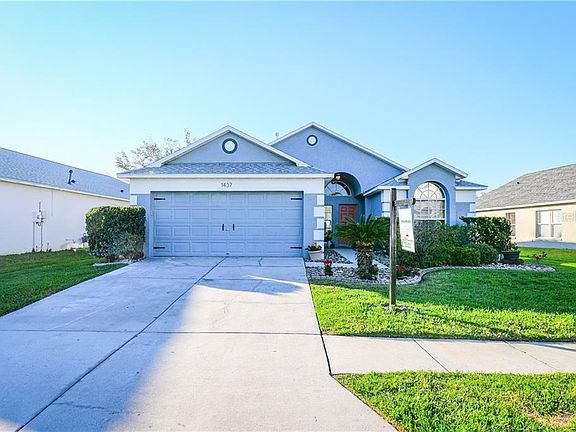 Welcome to ELEGANCE. This gorgeous 3-bedroom, 2-bathroom, 2-car garage home is located in the much sought-after community of Meadow Pointe and will capture your attention from the start. Mature landscaping and curb appeal will be your introduction. Upon entering the home, you will be greeted with luxury. The living room features gorgeous porcelain plank flooring that is reflected throughout the home in addition to 5-inch baseboards (2021), high ceilings and Wainscoting wall panels. The kitchen features granite countertops, stunning dark wood cabinets w/glass panels doors, beautiful tile backsplash and Travertine flooring. In addition, the kitchen includes stainless steel appliances, new Samsung dishwasher (2021), Amana stove (2018) and LG microwave (2020). It also includes an area for dining and features large window for plenty of natural light. The dining room is large which is perfect for entertaining family and friends. From the dining area you will step out to a large screened in lanai that leads you to a beautiful, landscaped yard with gravel walkway to outdoor seating area. As you tour the bedrooms, you will find the master to be large with plenty of closet space and sliding glass door out to the lanai. The master bathroom has been recently upgraded with light vanities, new mirrors and undermount Quartz sink. Absolutely stunning. Bedrooms 2 and 3 are a nice size with one featuring porcelain plank flooring and the other gorgeous maple hardwood flooring. The second bath has also been upgraded with new vanity and subway shower wall tiles (2021). As you move on to the garage, you will find it equipped with wall cabinets and metal storage shelving. Additional improvements/ upgrades include new roof (2019), new AC with 2 UV lights (2020) exterior paint (2018), new garage opener, gas washer and dryer, and lanai hurricane shutters to name a few. Warm and elegant, desirable location, truly a place to call home!!! Schedule your tour today. This one won't last long!