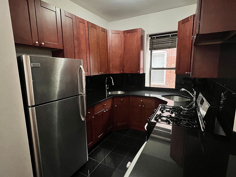 Newly renovated, gorgeous, quiet, clean, sun drenched large 1 bedroom apartment. Open kitchen with bar includes new appliances including refrigerator, range, washer & dryer, granite counter top, back-splash and 42" custom made cabinets with self closing doors.