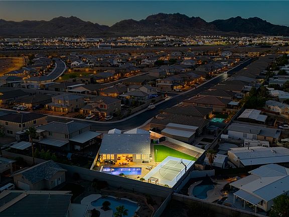 Stunning 1 story Boulder City home on over 1/3 of an acre. This home was built in 2022 and has it all and features an extra long 70' RV parking area w/ all hookups, 4 spacious bedrooms w/ en suite bathrooms, resort style backyard w/ in ground pool/hot tub and a full size pickleball/basketball court, gas fire pit in the backyard, artificial grass, mountain views, 3 car cooled garage and epoxy flooring, tankless water heater, open concept living and a very desirable floorplan, 3 community parks, conveniently located to the Boulder City shops and gold courses, and much more. THis one is a must see!