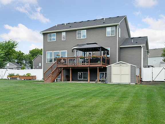 Completed in 2017 this home is very new-ish located in a newer development.Sellers are the only owners thus far. Gorgeous open concept with a well appointed kitchen, stainless appliances, gas range, double door fridge, rich dark cabinetry and beautiful stone countertops spilling out into a comfortable all inclusive dining area straight into a large living room with a gas fireplace. Gorgeous dark hardwood throughout the main level. Straight off the dining area is a large deck with plenty of room for all and excellent viewing of the very large, flat, grassy completely fenced in yard with 6 foot maintenance free fencing. Four bedrooms upstairs including the primary suite and laundry as well as a sitting/study nook. The basement is a look out with a large family room, bedroom and 3/4 bathroom as well as a small work room. AUGUST CLOSE POSSIBLE.