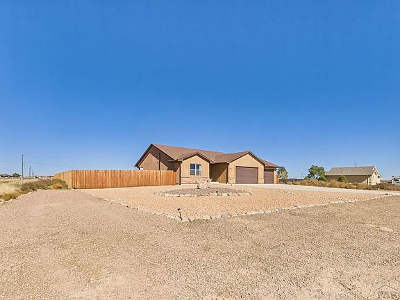 Discover exceptional living in this beautifully designed 5-bedroom, 3-bathroom ranch-style home, where style meets functionality. The inviting open-concept floor plan effortlessly connects the living, dining, and kitchen areas, making it perfect for entertaining or daily life. The chef's dream kitchen boasts wood flooring, elegant granite countertops, a spacious island, stainless steel appliances, and a stone accent wall. Retreat to the luxurious primary suite, featuring a walk-in closet and a spa-like 5-piece ensuite with granite counters, a soaking tub, and a walk-in shower. Additional bedrooms are generously sized, and the finished basement expands the home with three more bedrooms, vaulted ceilings, and a half kitchen wet bar—ideal for hosting guests or creating a dedicated entertainment space. Designed for comfort and efficiency, this home includes LED flush mount lighting, a tankless water heater, and a radon mitigation system. The exterior offers a beautifully xeriscaped lot with a fenced backyard for privacy and easy maintenance, plus convenient pull-through gates for storing large vehicles or boats. A 3-car attached garage provides ample parking and storage. Situated in the desirable Pueblo West community, this property combines modern amenities with a peaceful setting. Don't miss the opportunity to own this exceptional home!