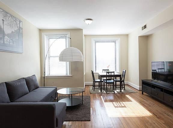 You will love living in this spacious, sunny apartment in a boutique building (3 units) at 1437 Girard St in Columbia Heights. Inside and out, this place is fantastic. Hardwood floors, high ceilings, 4 large and quiet bedrooms, two full baths, spread out over 1,800 sq ft. The open-concept kitchen/living room is great for hosting social events or simply cooking and eating with friends/family. Stainless steel appliances and granite countertops make cooking a pleasure!