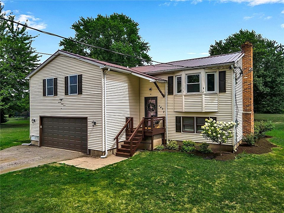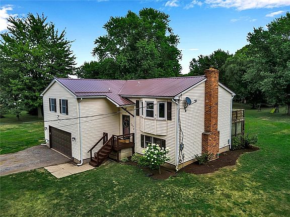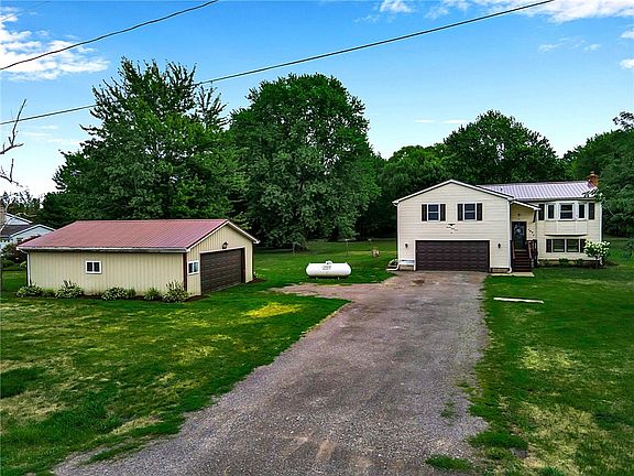 LOW TAXES, BARKER SCHOOL, 2.4 ACRES & SPACSIOUS! If you’ve been dreaming of MORE SPACE or a self-sustaining lifestyle, this property delivers! It features 2.4 acres of land w/ample space for gardens, chickens (with special use permit) & equipment, along w/the infrastructure to support a more independent way of living. A 768 sq ft pole barn, built in 2003 w/a gravel floor, can house up to four vehicles or be easily adapted for farming tools, feed storage, or even small livestock. Nearly the entire lot is enclosed by an electric pet fence, allowing your animals, and your way of life, the freedom to roam safely. Inside, the 2019 custom kitchen renovation features Thomasville cabinetry, Stone countertops, & newer appliances, blending functionality w/charm & opening directly into a formal dining area & vaulted-ceiling living room~ perfect for family gatherings or simply enjoying your peaceful surroundings. The spacious primary bedroom comfortably fits a king-sized bed & includes a laminate floor, a walk-in closet, & a private half bath. 3 additional bedrooms w/generous closet space & a shared full bath complete the main floor. The walk-out lower level adds incredible versatility, offering a flexible bonus space w/a cozy gas stove~ perfect as a family room, home gym or office. Sliding vinyl doors lead to a patio & a peaceful, park-like backyard lined w/mature trees. A 2nd full bath w/a new tub/shower surround is perfectly situated for easy cleanup after a day spent working outdoors. The large universal laundry/utility room features built-in shelving, for storage, or easily converted to a canning area. Additional exterior door offers quick access to the clothesline~ perfect for sun-dried linens and sustainable living. Major 2024 updates include a durable metal roof, kitchen water purification system, insulated garage door, new front door, & Andersen sliding door. In 2025, six new windows & laminate flooring were added, completing the home's refreshed & ready-to-enjoy condition. Whether you're just beginning your homesteading journey or seeking to expand your sustainable lifestyle, this rare gem blends comfort, practicality, & the freedom to live more independently!