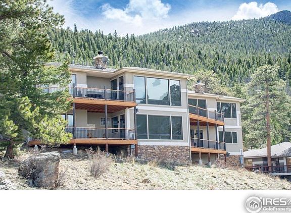 Serenity is an exceptional duplex custom home in Windcliff Estates that shows like new construction and is all about the mountain setting. Panoramic RMNP views pour into every room. Steps from RMNP & RNF. Huge great room, true gourmet kitchen, custom touches, heated 2-Car garage, luxury baths w/custom stone & tile work, slate floors in public areas, in-floor zoned radiant heat, two living levels w/decks and large outdoor hot tub. Private neighborhood of estate homes w/year-round access.