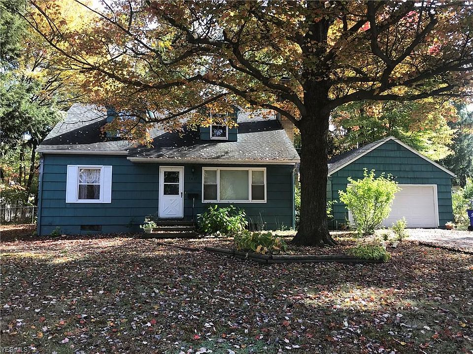 Welcome to this very charming 3 bed cape in Kent, Ohio on a 1/3 acre corner lot, close & convenient to Kent State University, shopping, eats & highways! The HUGE ceramic-floored kitchen with freshly painted cupboards is amazing with eat-in hardwood area (also allowing for table expansion for social gatherings!). New Windows 3 years ago!! Original hardwood floors in all bedrooms, living room, kitchen dining area. Fresh paint in living, kitchen/dining & two bedrooms. Upstairs bedrooms are HUGE w/ Full Jack n Jill bath! With the addition of a wall downstairs, current dining space could be easily transformed into bedroom 4 and still have significant kitchen eat-in area. Or if bedroom 4 is important, add a wall on second floor to add another bedroom to the generous space upstairs! Newer roof. Windows tilt in for easy cleaning. Boiler system is a very moist heat and boiler was replaced in 2008--good to go for years compared to a gas furnace ! Wood burning Fireplace in Living Room w/ built-ins. Repaired and painted cedar siding, nice fenced yard. Back covered patio is an amazing addition to this home and a place to escape the hustle and bustle. Covered breezeway to 2-car garage so you can stay out of the weather. Priced for the buyer who isn't afraid of some added DIY beyond what has been done! With its great location, bigger-than-expected interior space, and comfortably inviting charm, this is the next home for you! Don't miss your opportunity at this price point!!!