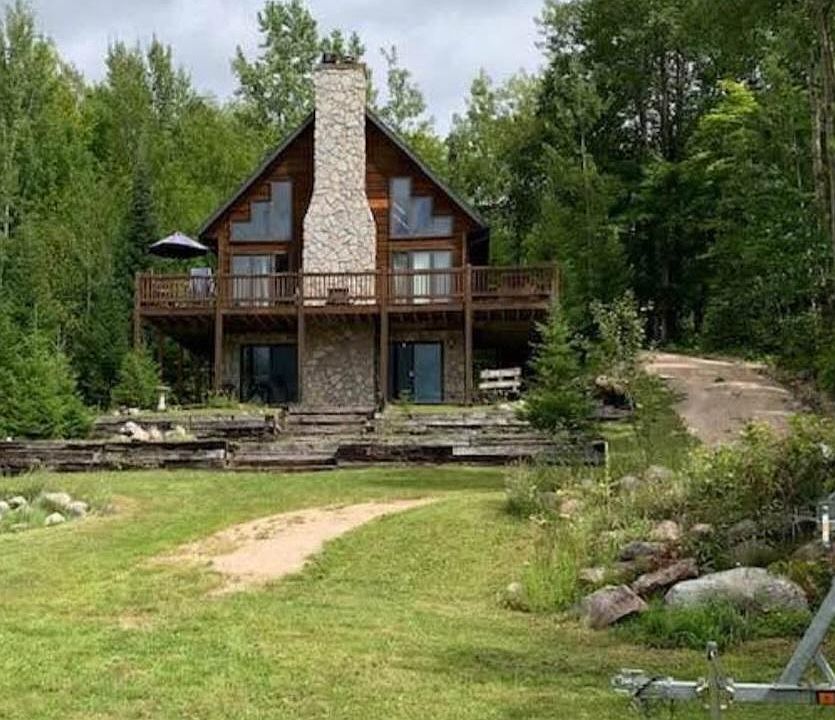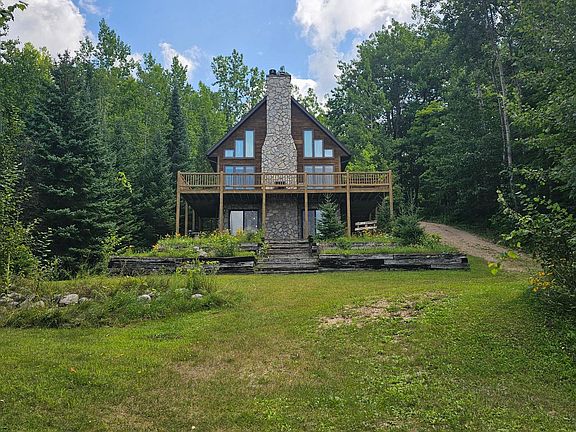 This beautiful year-round home is on Range Line Lake which is a full rec lake. It has awesome fishing and is great for swimming. The home has a wonderful overlook of the lake. Enjoy the wrap around deck and peaceful, beautiful sunsets at dusk. New roof in 2025. Nice large boathouse down by the lake. Awesome view from the yard on this quiet lake. Inside the house is clean and in great condition and ready to be moved into. Seller is willing to leave all furnishings and appliances. Full walkout basement ready to be finished with more bedrooms. There is also roughed in plumbing for a second bath. Addition to the waterfront home is a second lot across the street that has a large 30X40 garage with a full-length upper storage or shop loft. The garage is also rough plumbed for a bathroom. In addition to the garage on the lot there is a drilled well and a septic system. The garage lot could be sold at a later time if you wish. This is a must-see property. Make an appointment today to see it.