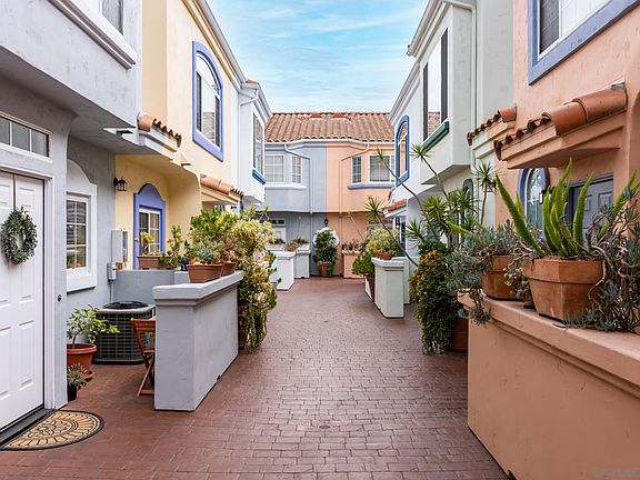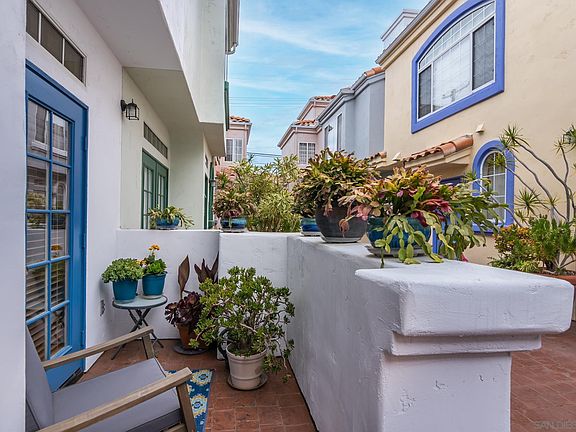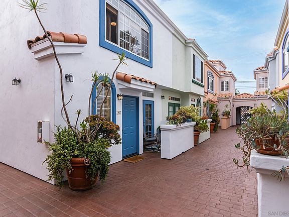 Villa Madrid, on one of Hillcrest's nicest streets. Meander through the courtyard to the townhome entrance. Beautifully updated with hardwood flooring throughout the main living areas, with a cozy gas fireplace. Adjacent you'll find an updated 1/2 bath. The dining area is open to an updated kitchen with built-ins, granite and SS appliances. Large outdoor area off of the dining/kitchen. Up the stairs and there is an enclosed stackable electric washer & gas dryer, 2 generously sized bedrooms, both ensuite with thoroughly updated bathrooms with the finest of materials, quartz and Kohler. This home is welcoming and impressive.