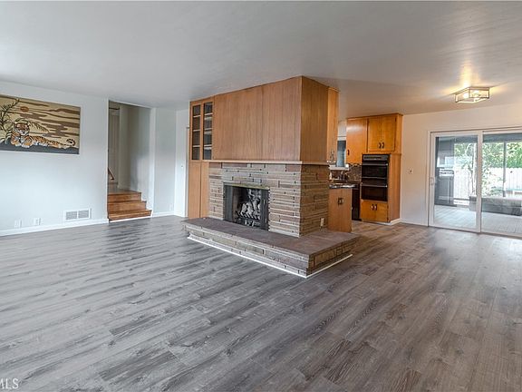 Inside, the home is filled with natural light streaming through large windows throughout, creating a warm and inviting atmosphere. It features three bedrooms with original hardwood flooring, a spacious living room centered around a cozy fireplace, and a versatile second living area with an enclosed patio. The private backyard is designed for easy enjoyment and entertaining, offering a built-in BBQ and low-maintenance landscaping.