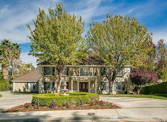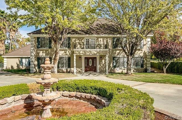 Exuding stately elegance on a cul-de-sac in the hills of Redlands is this newly remodeled 4 bedroom, 4.5 bathroom home. A spectacular entryway and staircase greet you with gleaming dark hardwood floors that flow to a formal living room with marble fireplace, dining room and on through the downstairs. The kitchen features antiqued cabinetry, custom tiled backsplash with contrasting black granite counters, new SS appliances, butler's pantry and dining nook with bay window. French doors lead to the backyard from the family room with another cozy fireplace. Stamped concrete patio, pool and spa is perfect for entertaining. The bedrooms are generous with the master suite that includes a balcony. All bathrooms boast granite counters, custom tile, new fixtures, lighting, and mirrors. More upgrades include custom shutters throughout, top-of-the-line lighting and ceiling fans, plush new carpet, fresh paint and too much more to mention! This home must be seen to be appreciated and waits for you!