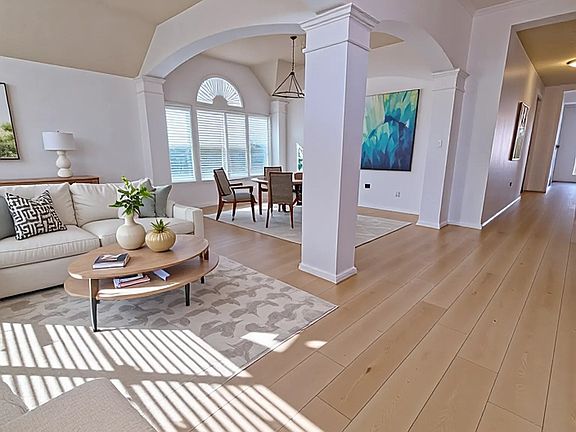 Light and bright with an open floor plan, this stunning one-story home offers both comfort and style. Newly updated with beautiful vinyl plank flooring and fresh paint throughout, this home feels modern and move-in ready. Features include stacked formal living and dining areas, a spacious kitchen with a large island, hardwood finishes, and a skylight that fills the space with natural light. The 4th bedroom, complete with a closet, is currently used as a study and features elegant French doors off the entry. The primary suite is privately split from the secondary bedrooms and overlooks the backyard. Enjoy a relaxing primary bath with bay windows, dual vanities, a garden tub, a large walk-in closet, and tile flooring. Ceiling fans throughout. The backyard is perfect for outdoor living, featuring an arbor-covered deck and a grassy area ideal for play or entertaining. Exceptionally clean and never previously leased this home is move-in ready!