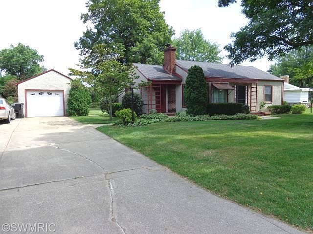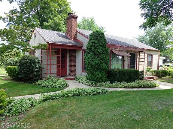 Extra nice 2 bedroom stucco ranch just outside city limits on 2.9 acres,.... LOW twp. taxes ! Comfortable and cozy with oak kitchen cabinets,wonderful wood fireplace in living room , cedar closets, 1 car garage, full finished basement and nice screened 3 seasons porch. New windows approx.4 years ago , new roof approx. 6 years ago. New water heater just installed .