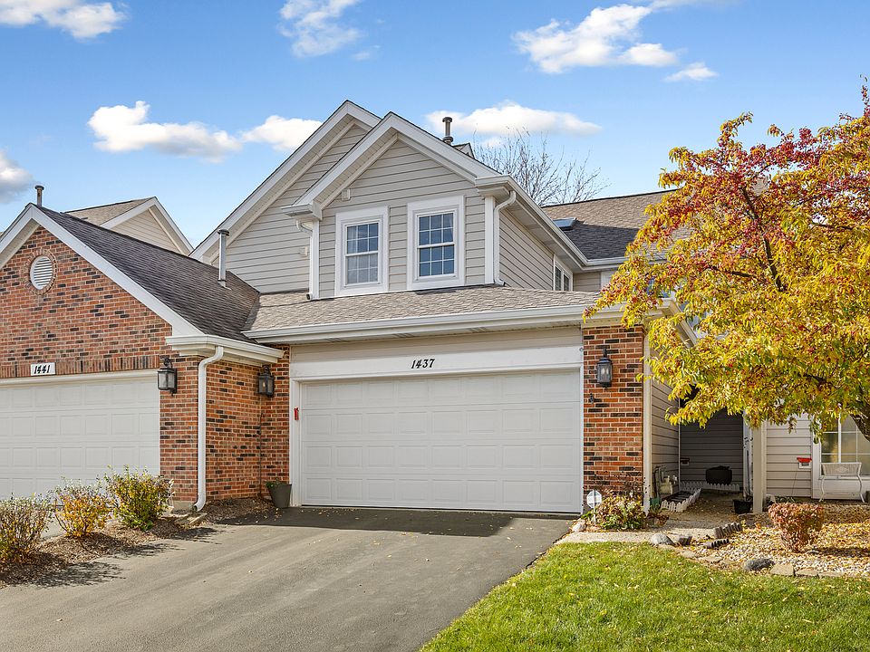 GOREGEOUS AND PRIVATE TOWNHOME WITH LOFT AND FINISHED BASEMENT! Welcome to this stunning 2-bedroom, 3.1-bath home that truly has it all! From the moment you arrive, the shaded, private entrance sets the tone for the style and comfort found throughout. The beautiful kitchen features CUSTOM CABINETRY, QUARTZ countertops, a farmhouse sink, tile backsplash, and NEWER stainless-steel appliances. The OPEN CONCEPT LIVING AREA showcases a dramatic TWO-STORY FIREPLACE and a separate dining space with views of the PRIVATE PATIO High-quality porcelain gray-washed wood-tile floors flow throughout the main level, complemented by an updated half bath with a navy vanity and stone accent wall. Upstairs, you'll find TWO SPACIOUS BEDROOMS and a versatile LOFT ideal for a home office or sitting area. The luxurious primary suite has VAULTED CIELINGS, a walk-in closet, and an expansive master bath. The FULLY FINISHED BASEMENT offers an ADDITIONAL FULL BATHROOM and abundant STORAGE SPACE. Enjoy the convenience of an attached two-car garage. NEWER washer and dryer, and water heater. A NEWLY INSTALLED FENCE adds privacy to the backyard and a subtle separation in the front entrance giving this home a single-family feel. Nothing to do but move in and enjoy! Located in sought-after District 54 and 211 schools, with easy access to highways, shopping, and dining, this home truly has it all. A MUST SEE! Don't miss your chance to own this exceptional property-schedule your showing today!