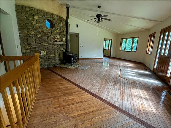 Equipped with propane gas heat, central air, and a wood-burning stove, the home ensures comfort throughout all seasons.