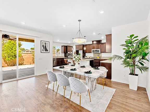Nestled in the University Park community of Chino, this Lennar home is practically brand new from 2017, 5 bedroom, loft and 4 bathrooms home 3046 sq. ft. of living space. Main floor with a downstairs bedroom and its own bathroom plus a powder room for guest. Enter into the great room, which features a dining room and great room for entertaining. Gourmet kitchen with lots of beautiful cabinets, center island and gorgeous lighting, stainless steel double ovens, additional prep space and butler's pantry. Direct entry into 3 gar tandem garage. Upstairs offers a loft and 3 secondary bedrooms, 2 more bathrooms and master suite. Elegant master bathroom with separate shower and soaking tub, and large walk-in close. Laundry room with cabinets. Many upgrades such as custom shutters, fans in every room, upgraded engineered wood flooring and extra thick carpeting throughout and solar. Private backyard, large covered patio heavily insulated with two fans and lighting, beautifully landscaped and lots of landscaping Over $65,000 in upgrades. Close to parks and highly desirable schools.