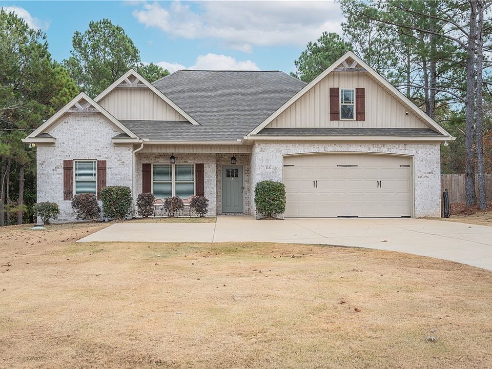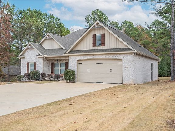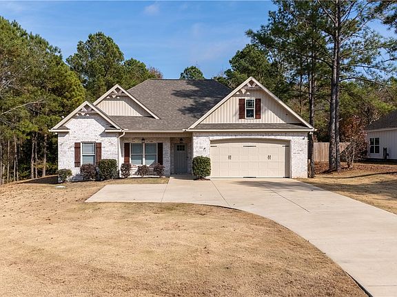 Welcome home to this beautifully-constructed 2018 brick residence nestled on nearly half an acre in the highly sought-after 36804 area of Opelika. This one-level floor plan offers 3 spacious bedrooms and 2 full baths, with approximately 1,715 sq ft of living space. The open-concept living area features a large kitchen with granite countertops, tile backsplash, and custom cabinetry, seamlessly flowing into the dining and living rooms for comfortable, modern living. The primary suite boasts double vanities, a garden tub and glass-enclosed shower, plus a generous walk-in closet. Outside, enjoy a covered rear porch overlooking a level, private wooded yard, perfect for entertaining or relaxing in a tranquil setting. This home offers a combination of quality, style and space that’s hard to find, come see it today!