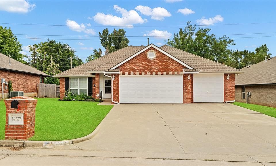 Welcome to this impeccably cared-for home tucked away in the highly sought-after Choctaw Creek community. This stunning single-level residence features 3 spacious bedrooms, 2 full bathrooms, a dedicated home office, and a generous 1,963 sq ft of well-designed living space, creating a layout perfect for both daily living and entertaining. Built in 2005 with timeless brick-and-frame construction, this home sits proudly on a 7,802 sq ft lot and includes an expansive 3-car attached garage—ideal for extra vehicles, storage, or a workshop space. Highlights include: * Airy and open floor plan drenched in natural light * Central gas heat and electric cooling for year-round comfort * A cozy masonry fireplace perfect for cool Oklahoma evenings * Classic architectural details paired with fresh, neutral finishes * Relaxing covered patio offering tranquil views and outdoor living potential Located in a peaceful, established neighborhood with easy access to schools, dining, and shopping, this home offers the perfect blend of comfort and convenience. Whether you're working from home, entertaining guests, or enjoying quiet evenings by the fire, 14374 Timberdale Drive welcomes you to a lifestyle of ease and elegance.