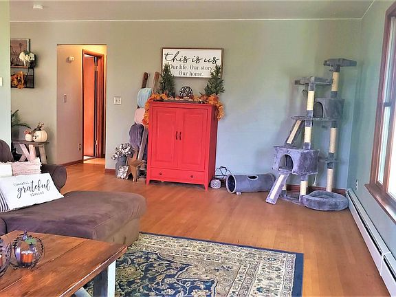 Great location just outside of town! This two bedroom 2 bath ranch home sits on just under a half acre lot has amazing views of the countryside. Property offers oversized detached 2 car garage and additional outbuilding that has plenty of space for all your toys or would make the perfect workshop. Newly updated kitchen with farm style sink and stainless steel appliances overlooks the spacious front yard. Loads of natural light in the generous living room living room with hardwood flooring. Master bedroom with spacious closet and hardwood flooring. The second bedroom features hardwood flooring. Finished basement with bar area, family room, new bath and office area with closet. Come check out what country life has to offer!