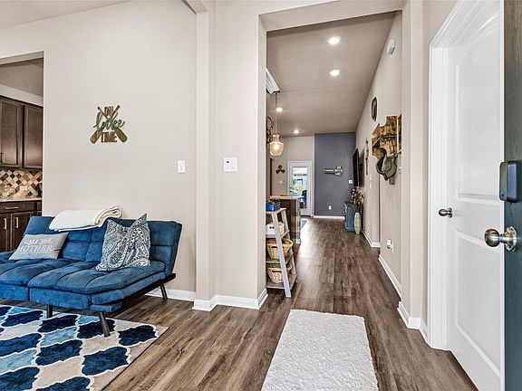 Step into this stunning property in Point Aquarius with its very own backyard oasis! This former Stylecraft Builders model home from 2019 showcases 9ft ceilings, vinyl flooring, granite countertops, tile backsplash, custom landscaping, and a premier swimming pool. The backyard oasis is a paradise with a sport pool featuring blue pebble plaster, tanning area with umbrellas, travertine coping and tile, stamped concrete, and a heat and chill pump. Fire rock accents illuminate the yard at night, creating a magical ambiance. Perfect for relaxing weekends or a peaceful lake retreat!