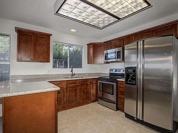 Great location with newly remodeled home - Large 1800 sq ft 3 bedroom 2.5 bath home -Fresh paint inside and out, new kitchen and bathroom cabinets, granite counters. Open and bright living room with cozy fireplace, inviting eat in kitchen, spacious family room with exit to patio and large grassy backyard. Separate 10x12 remodeled workshop/craft room/office with wall a/c, fully insulated with drywall and carpet. - 2 car insulated garage, built in cabinets and service door. Great location with N/S exposure. Ready to move in!