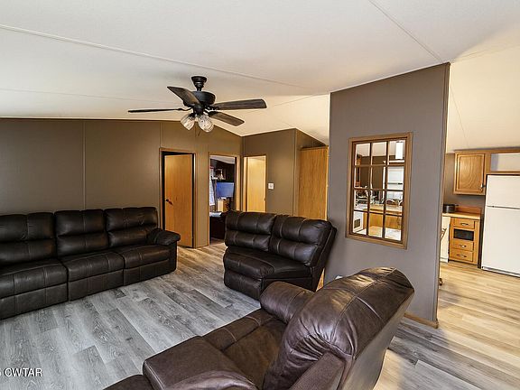 Affordable mobile home in the center of town featuring 3 bedrooms, 2 full baths, a fenced backyard, storage building, and a front porch with ramp. Interior offers vinyl plank flooring in the common areas, a functional kitchen, and a split-bedroom layout. Central unit in place, with additional window units. Sold as-is, but seller is open to repair considerations based on the buyer's needs. A practical option for rental income or affordable housing. $85,000.