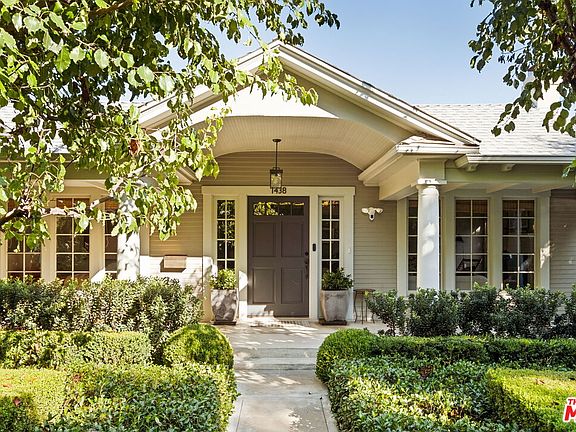Nestled in the heart of Sunset StripHollywood Hills West, 1438 North Orange Grove is a beautifully preserved Craftsman bungalow that seamlessly blends timeless architecture with modern luxury in Historic Spaulding Square (HPOZ). A gated hedged entry opens to a lush garden oasis framed by manicured boxwoods, mature trees, and white roses creating a tranquil escape from city life. Inside, natural light fills the formal living room, which opens to a versatile office and guest bedroom ideal for hosting visitors or working from home. The elegant dining room flows effortlessly into a bright sitting area, perfect for morning coffee or quiet reading. The home offers 3 bedrooms and 2 bathrooms, including a serene primary suite with marble finishes, a walk-in shower, and generous closet space. The chef's kitchen impresses with a premium Wolf range, marble countertops, stainless steel appliances, and built-in banquette seating. A charming sunroom leads to the private backyard retreat, featuring a grassy lawn, patio, and a detached studio with its own bath ideal for guests, a creative workspace, or an in-law suite. With refined design, lush landscaping, and an unbeatable location, this Spaulding Square gem captures the perfect balance of historic character and contemporary living.