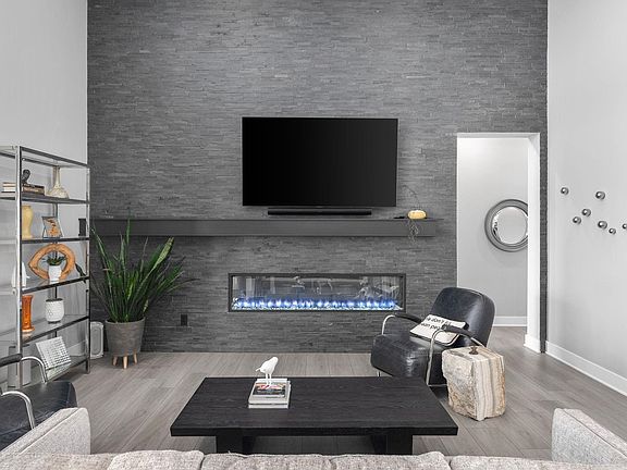 Welcome to the epitome of luxury living at 1438 N. Shadow Rock. This breathtaking one-story home not only offers stunning water views but also seamlessly blends indoor and outdoor living with its expansive sliding glass doors leading to a covered lanai. Situated on nearly half an acre of land, this spacious residence boasts 5 bedrooms, 3 full bathrooms, and 2 half bathrooms, spread across over 3,700 sqft of meticulously finished space. The living room captivates with wonderful natural light, soaring ceilings, a floor-to-ceiling stone wall, complemented by a sleek electric fireplace and recessed lighting, seamlessly flowing into the dining area and chef's kitchen. Here, culinary dreams come to life with top-of-the-line stainless steel appliances, including a GE gas stove top, touch screen refrigerator, double ovens, and Bosch dishwasher, all graced by Quartz countertops, cushion closed drawers, and a walk-in pantry. Retreat to the primary suite, a haven of tranquility boasting water views and an ensuite bath adorned with tile flooring, a luxurious walk-in shower, and double Quartz vanities illuminated by LED lighting. Convenience meets elegance with a walk-in closet featuring 3 tier hanging rods and direct access to the separate laundry room. The main level also offers a half bathroom and two additional bedrooms connected by a jack and jill bathroom. Descend to the walkout basement, where endless entertainment awaits in the spacious family room, complete with plush carpeting, built-in shelves, and a rec room featuring an oversized wet bar. Two bedrooms with walk-in closets and a jack and jill bathroom provide comfort and privacy for guests. Outside, the covered lanai beckons you to bask in the breathtaking water views, while the fully fenced backyard offers lush landscaping and ample space for outdoor activities. Elevating the allure of this residence, the lanai and garage feature epoxied flooring, while electronic window treatments adorn various windows throughout. Experience the pinnacle of luxury living - welcome home to 1438 N. Shadow Rock.