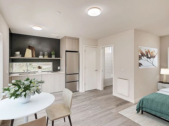 Spacious, modern studio in the heart of Ballard. This bright, window filled unit floods natural light throughout every inch. Interior features include luxury plank flooring, stainless steel energy efficient appliances, undermount sink, white quartz countertops, modern tile backsplashes, and in-unit washer and dryer. Full bathroom includes large tub/shower with rainfall showerhead and large white quartz counters.