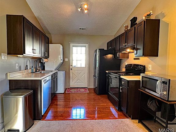 Home on a quite cove end unit with lots of natural light. Open floor plan with vaulted ceilings. Easy living with updated kitchen, office area, private laundry and a deck with storage locker. The view is out to a beautiful courtyard. The Brentwood Forest amenities include pool, tennis courts, walking trail, gorgeous lake at the entrance of the complex. The location is ideal located near hwy 64, Brentwood Square market, resturants, and close to Clayton, minutes from Downtown STL.