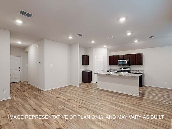 The Ashburn is a single-story, 3-bedroom, 2-bathroom home that features approximately 1,263 square feet of living space. This quaint floorplan features an entryway that flows directly into the large, open-concept kitchen. It has beautiful white cabinetry with granite counter tops. Enjoy entertaining guests in this home with a dining room located conveniently off the kitchen. The kitchen features a large breakfast bar and a perfect sized pantry. Our homeowners can enjoy the oversized main bedroom with large walk in closet and oversized shower. Additional modern finishes include granite kitchen countertops and stainless-steel appliances. You’ll enjoy added security in your new D.R. Horton home with our Home is Connected features. Using one central hub that talks to all the devices in your home, you can control the lights, thermostat and locks, all from your cellular device. With D.R. Horton's simple buying process and ten-year limited warranty, there's no reason to wait! (Prices, plans, dimensions, specifications, features, incentives, and availability are subject to change without notice obligation)