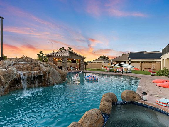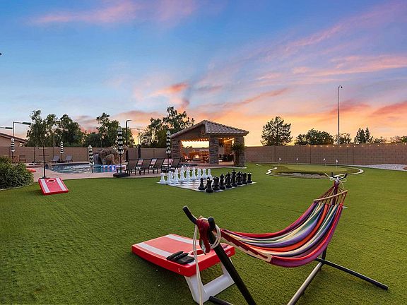 This home is jam-packed with amenities, including a fully stocked kitchen with high-end stainless appliances, ample cabinetry, a large refrigerator, and a large island with high seating. The living room features a 65" smart TV, a large plush sofa, a high ceiling, and direct backyard access. Enjoy the movie/game room with a smart TV, arcade games, a foosball table, a poker table, a popcorn machine, a large leather sofa, and plush seating. Other amenities include a home gym, TVs in each bedroom, a basketball court, a gazebo with a built-in BBQ grill and bar with a TV, a fire pit, an outdoor patio/dining area, putt putt, corn hole, axe throwing, giant connect 4 and chess, a ping pong table, a hammock, and poolside loungers with umbrellas.