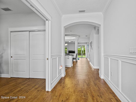 No Need to look any further! This home has it all. This 2017 built Key West style home is open yet cozy! This is a true 4 bedroom 2 bath floor plan with the the perfect amount of room! The special features show throughout his home Whether it be the large closets, the tray ceilings, or the builder's final touches! The Primary Bedroom offers a beautifully tiled walk-in shower, Double Vanities and an x-large walk-in closet. This home does not disappoint. From the entry front porch to the 176 square foot paved screened patio. This is a true Florida retreat! The privacy and view of healthy green foliage on this back patio is serene. Talk about location! This is so close to all the happenings in Viera yet tucked away in a beautiful GATED neighborhood! Capron Ridge's Cashel Village. This community offers a heated pool with a large beautiful Clubhouse, walking trails, tennis, basketball court, fitness center and playground. This Beautiful Modern Cozy home is a definite must see.