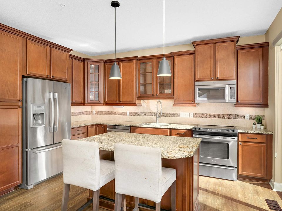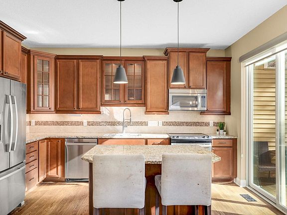 Imagine waking up in a home filled with beautiful natural light, then stepping out onto your deck to enjoy your morning coffee while overlooking the trees and listening to the birds chirping. This spacious end-unit townhome offers private backyard views — you won’t see your neighbors — and perfectly blends comfort, modern style, and easy living in a highly desirable area. The upper level features three bedrooms, including a master suite, a versitile loft, and ample storage. On the main floor, you’ll find a living room, office, a gourmet kitchen, dining area, and a generously sized laundry room. knock down ceilings, recessed lighting, high ceilings and central vacuum provide modern convenience throughout the home. The nicely finished walkout lower level includes a ¾ bathroom and a wet bar with ideal for entertaining or creating a mother-in-law suite and heated floors, perfect for the cold Minnesota winters .Beautiful walking paths, ponds, parks, fishing ponds and entertainment near buy! Come see for yourself!