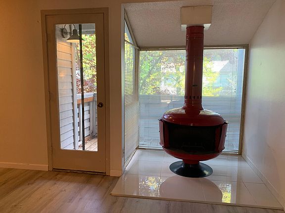 Mid century Modern Townhouse Wood beam ceilings 3 private decks Oversized 1.5 car garage Washer/dryer hookups in unit Luxury vinyl laminate flooring Wood burning fireplace Central gas furnace Resident pays all utilities Central Beaverton Neighborhood $65 screening fee per adult