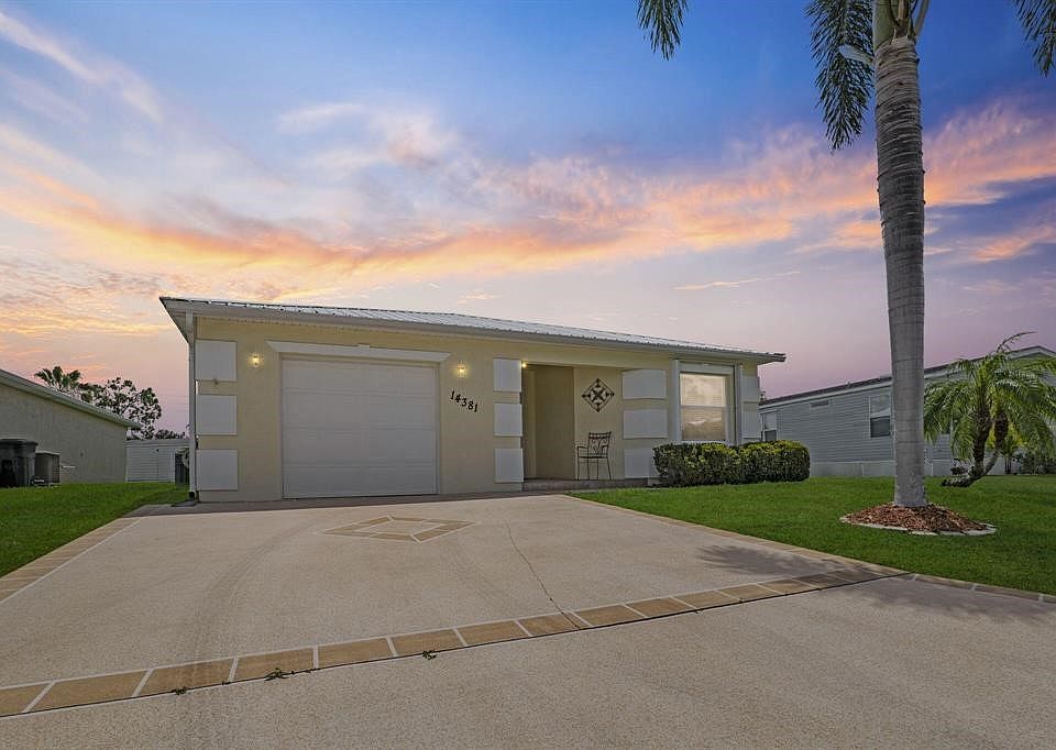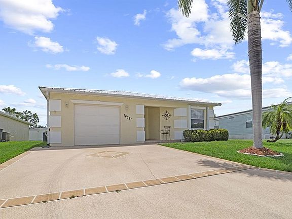 Great price to own a 2005 concrete block, single-family home in the Fairways at Spanish Lakes! This 2 bed, 2 bath home features an open split-bedroom layout, interior laundry, and a 1-car garage. Enjoy peace of mind with a 2022 metal roof, 2016 A/C, and accordion shutters. The screened porch is perfect for relaxing, and the open concept living area makes entertaining a breeze. Located in a vibrant 55+ community known for its resort-style amenities including golf, pool, tennis, pickleball, clubhouse, and endless social activities. Built for an active lifestyle this community has it all!
