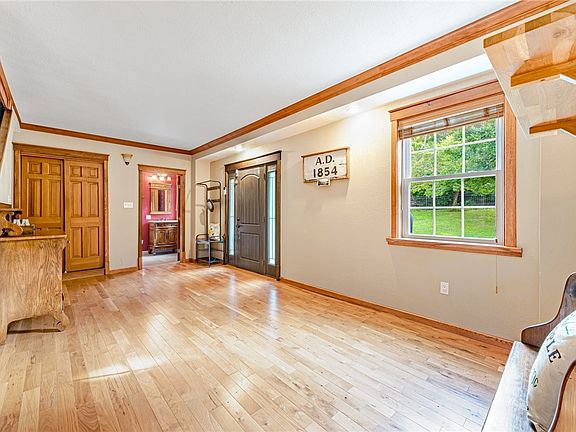 Gorgeous wood work, rich hardwood floors and original character make up just some of the desirable features of this updated farmhouse. It sits on just under an acre that is enclosed with a wrought iron fencing accented with mature landscaping. The covered side porch and patio area offer the perfect privacy to enjoy cool evenings in the hot tub. Inside the wow continues with a desirable floor plan, high ceilings, recessed lighting, bright rooms a first floor office/bedroom, an entertainers kitchen with butcher block island, gas cook top, double wall ovens and stainless appliances, brick accent walls, an enclosed sunroom, laundry room/walk in pantry on the main floor. The main bedroom has double cedar closets and en-suite w/ glass enclosed walk in shower. Attached to the home is a separate apartment w 2 bedrooms and 1 bath, private access and off street parking. Additionally there is a 2 car integral garage, plenty of parking, garden area, newer roof & dry basement full bath and storage.