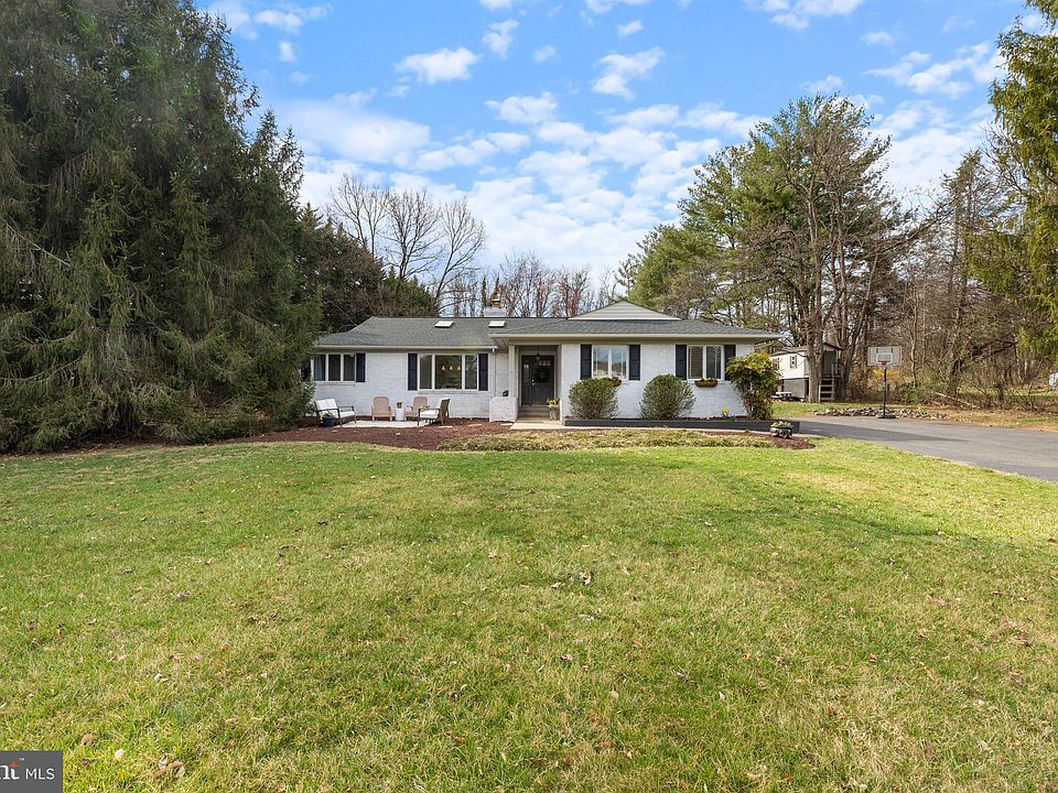 Welcome to this stunning ranch-style home, a perfect blend of comfort and modern living, nestled in a serene cul-de-sac setting. Built in 1986 and extensively renovated in 2019, this property boasts 2,783 sq. ft. of meticulously maintained space, featuring 3 spacious bedrooms and 2.5 bathrooms. The interior showcases an open floor plan, complemented by recessed lighting and skylights that flood the space with natural light. The gourmet kitchen is a chef's dream, equipped with stainless steel appliances, including a six-burner commercial range, 2 dishwashers and energy-efficient options. Enjoy meals at the kitchen island, while the adjoining dining area is perfect for entertaining. The primary suite offers a 2 closets along with a luxurious walk-in closet. Step outside to your expansive 1.68-acre lot, where tranquility meets nature. The property backs to lush trees, while the level yard is ideal for outdoor activities. Enjoy views of the garden and surrounding greenery from your deck, perfect for morning coffee or evening gatherings. Conveniently located less than 10 miles from the airport and within close proximity to commuter lots, this home offers easy access to transportation and major routs 15, 29, 66 and 50. Additional features include a finished basement, a brick fireplace, and ample parking with a paved driveway. This exceptional property is ready to welcome you home!