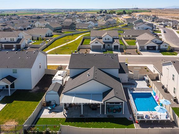 Beautifully maintained home with thoughtful upgrades throughout! Enjoy 9’ ceilings, a cozy fireplace, and a gourmet kitchen with double ovens, gas cooktop, pantry, and quartz counters. Tinted windows enhance efficiency, while the partially screened covered patio is perfect for year-round relaxation. Take a dip in the quality above-ground pool or store your toys with convenient RV parking. Owner’s suite and great room include ceiling fans; kitchen island equipped with pendant lights. Extras include 6” baseboards, Ring doorbell, pre-plumbing for a whole-house water system, 8’ garage doors, and full landscaping. Minutes to Lake Lowell, shopping, dining, and freeway access, with rolling views and green spaces nearby.