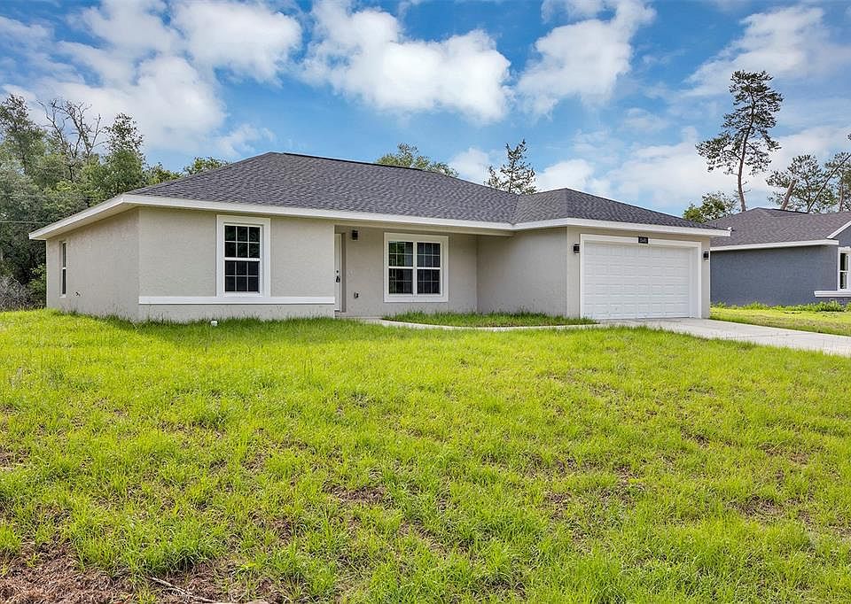 Under Construction. New construction, beautiful home currently under construction in Marion Oaks. This 3 bedroom, 2 bath home, 2 car garage is being built to the highest of standards and expected to be finished in July 2023. The home includes stainless steel appliances, luxury vinyl plank flooring, custom kitchen with custom soft close cabinets and quartz counter tops, ceiling fans and inside laundry. Modern light fixtures, quartz counters in all bathrooms, double sink in master and beautiful tile. Builder is also including WHITE VINYL FENCING FOR THE BACKYARD. Attached photos are from a similar model and are for illustration purposes only and are to show layout, floor plan is our standard plan and garage orientation may vary on actual home. Interior and exterior colors and finishes will vary. Full one year builder warranty with an extended 2-10 warranty provided at closing. *** Lender will contribute up to$3,000 towards buyer's closing costs ***