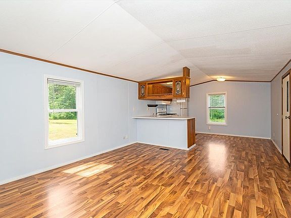 2 bed, 1 bath mobile home that has been well cared for! The home features an open living area with door to a back deck, modest bedrooms, and a full bath. There is also a 1 car garage with a wood floor and a shed/workshop with a lean-to. The property is a combination of yard and woods and is ideal for the privacy of country living! Seller is having the current parcel surveyed and this property will include the East 5 acres. a 40' easement will run along the south side of the property for access to the west 5 acres.